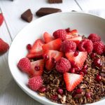 Anyway, less about chocolate and more about this granola! The chocolate that I’ve used in this recipe was their orange flavour and the fruity infusion tastes amazing running through the granola and when mixed with milk, it turns the milk all chocolatey! It’s a great breakfast option for when you’re in a rush and just want something that you can throw into a bowl with very little fuss or preparation. If you wanted to up the protein content, you could always try pairing this with some greek yoghurt, nut butter or even mix some protein powder with your milk to create a kind of protein cereal bowl? Get creative, that’s what cooking is all about!