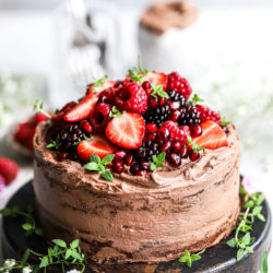 - Once cooled, spread a generous layer of frosting over one of the cakes and sandwich together. Cover the cake in the lucious frosting and decorate with fresh fruit or other toppings of choice.